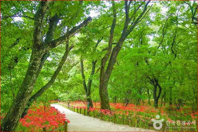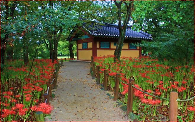 그러나 가을의 상림은 그 어떤 계절보다 특별합니다. 바로 숲길을 붉게 수놓는 꽃무릇 때문입니다.