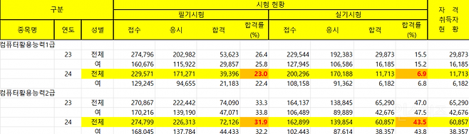컴퓨터활용능력1급 실기 합격률 6.9%