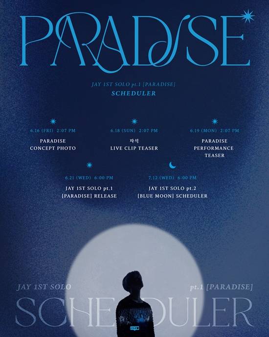 김진환은 15일 오후 아이콘 공식 SNS를 통해 'JAY 1ST SOLO pt.1 PARADISE(제이 퍼스트 솔로 파트 원 파라다이스)'의 스케줄러 이미지를 깜짝 공개했다.