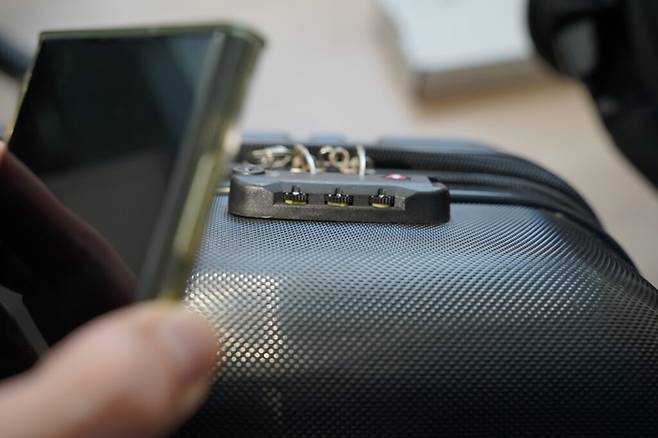그러면 금세 잠금 버튼이 열리는 것을 보실 수 있답니다. 그리고 본인이 설정해 두었던 캐리어 비밀번호 찾기도 가능합니다.