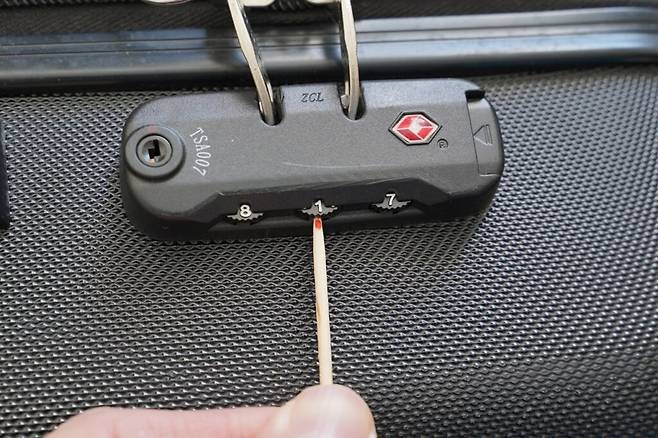 캐리어 비밀번호가 생각나지 않아 하나씩 돌려서 확인하려면 하루 종일 시도해야 찾을 수 있는데요. 이쑤시개 하나만 있으면 어떤 캐리어 가방이라도 쉽게 열 수 있답니다.