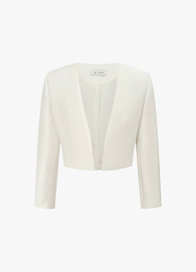 • 특징: 노카라 디자인, 크롭 기장, 우아하고 고급스러운 분위기 연출, 화사한 컬러