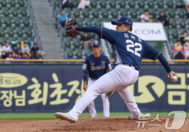 (서울=뉴스1) 박세연 기자 = 18일 오후 서울 송파구 잠실야구장에서 열린 프로야구 '2025 신한 SOL뱅크 KBO 리그' LG 트윈스와 NC 다이노스의 경기에서 NC 선발투수 김녹원이 역투하고 있다. 2025.6.18/뉴스1