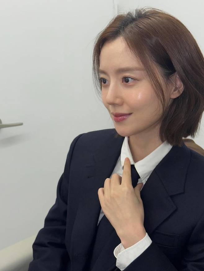 사진 속 그녀는 깔끔한 화이트 셔츠에 블랙 넥타이와 재킷을 매치, 38세의 나이가 믿기지 않는 시크하고 중성적인 매력을 발산했습니다.