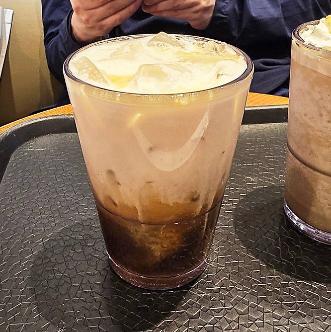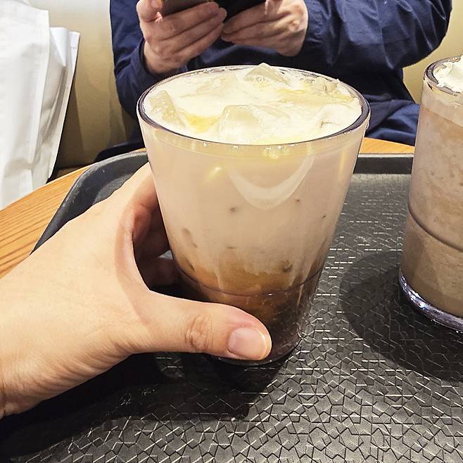 중간에 빨대를 넣어 전체적으로 섞은 뒤 마셨는데