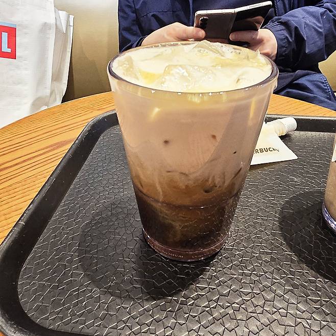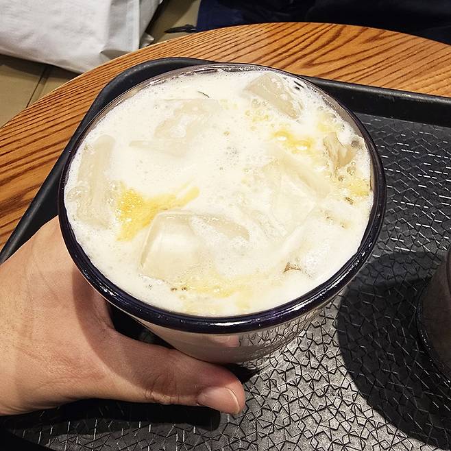중간에 빨대를 넣어 전체적으로 섞은 뒤 마셨는데