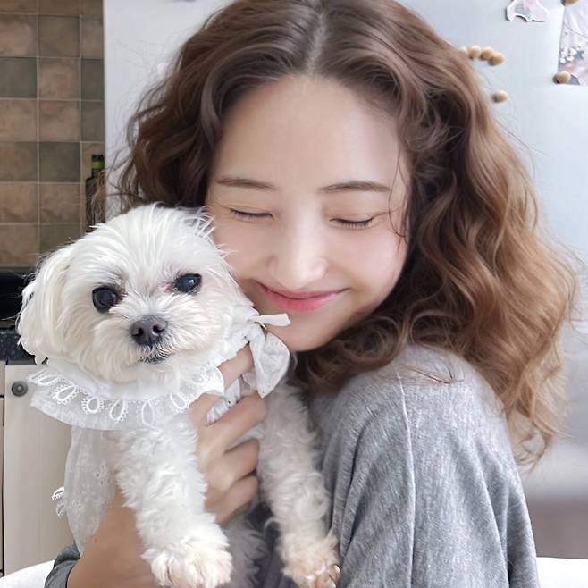 조용한 일상 속에서, 한채영은 얼굴 가득 미소를 머금은 채 반려견을 품에 안고 있었어요.