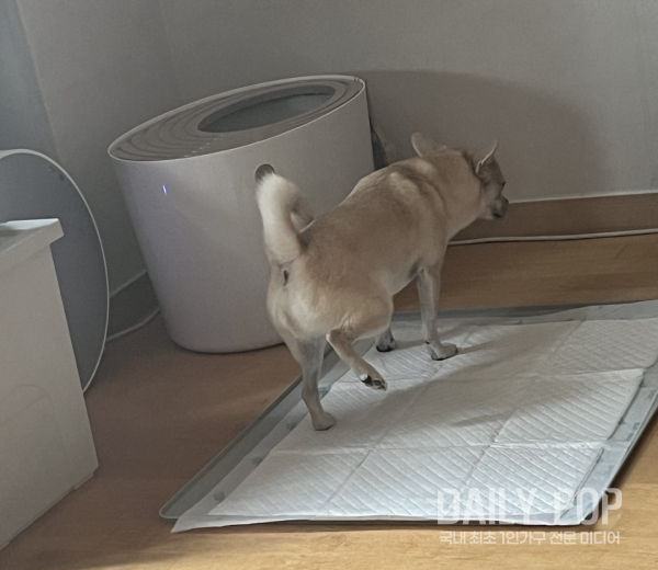 실리콘 패드를 구매한 후에는 이같은 불상사가 많이 줄었다. 실리콘 패드의 두께만큼 배변패드 위치의 높이가 달라졌기 때문인지, 기존에 모서리에서 배변 보기를 좋아하던 강아지가 배변패드 정가운데에서 대소변을 해결하는 것을 확인할 수 있었다.