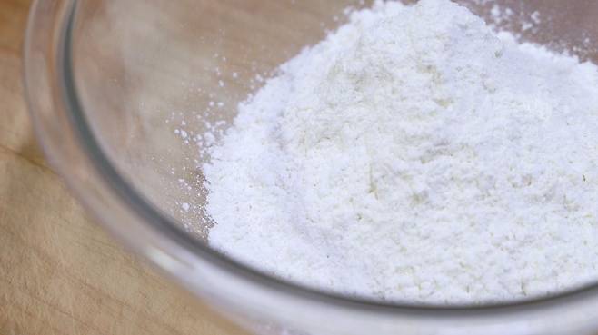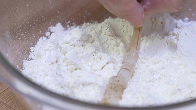 마지막으로 볼에 밀가루를 담으면 튀김 준비 완료!