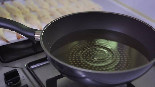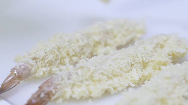 이제 튀기기만 하면 맛있는 새우튀김 완성이에요.