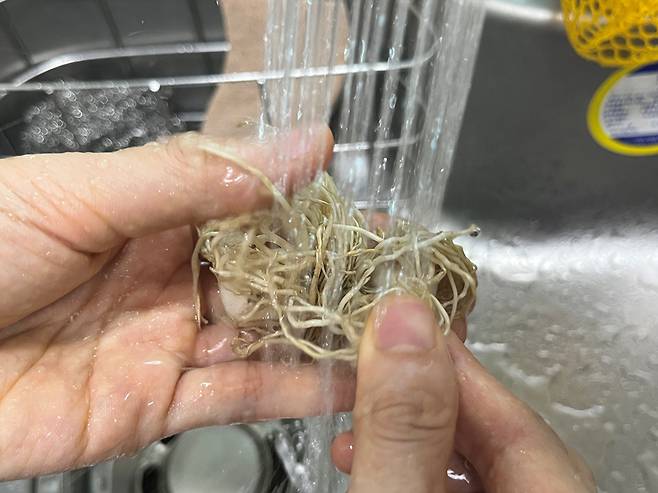 파뿌리는 깨끗하게 씻은 후 나중에 육수낼 때 쓰면 유용합니다. 단, 흙이 많으니 여러 번 세척해 주세요.
