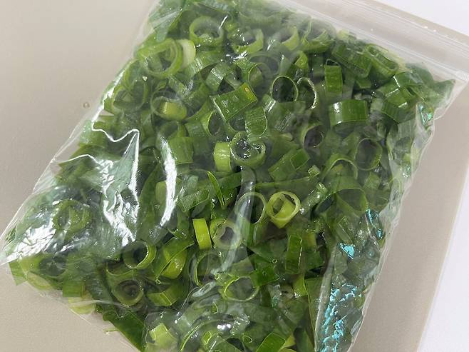 대파 보관 시 기름을 넣으면 대파가 서로 뭉쳐서 달라붙지 않습니다. 요리할 때 바로 꺼내서 사용하면 되기 때문에 무척 간편합니다.