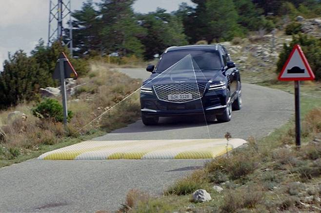 프리뷰 전자제어 서스펜션은 전방 노면 정보를 카메라와 내비게이션 센서를 통해 인식한 뒤, 주행 조건에 따라 서스펜션 감쇠력을 자동으로 조절하는 기능이다. 특히 과속방지턱 등 내비게이션에 저장된 정보와 연동하여 보다 부드러운 승차감을 구현하는 것을 목표로 한다.