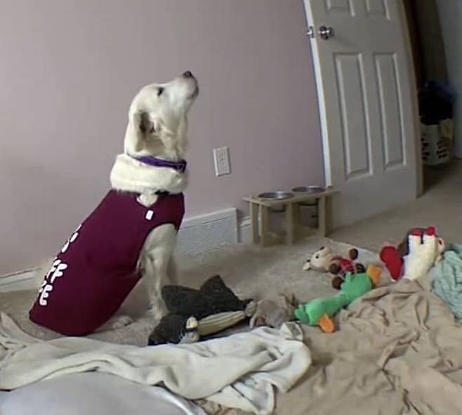 그러던 어느날, 놀라운 일이 벌어졌습니다. 다나 씨가 외출한 뒤 집안을 비추는 펫 카메라에 오팔의 모습이 찍혔는데 오팔이 고개를 들고 하늘을 향해 아주 크게 하울링을 하기 시작한 것이 아니겠습니까.