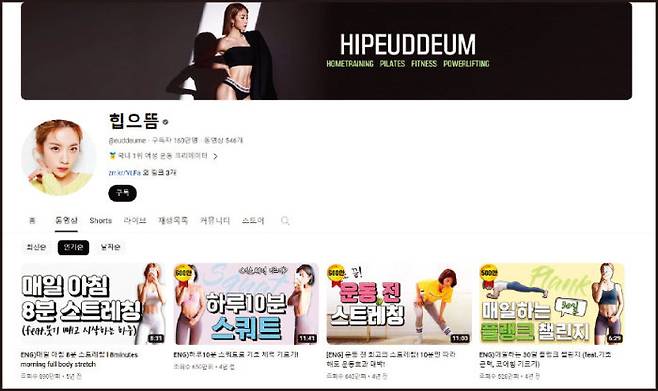 ‘국내 1위 여성 운동 크리에이터’ '유튜버 홈트계의 끝판왕’ 같은 수식이 대변하듯, 홈트 분야에서 일타강사로 통하는 심으뜸이 운영하는 채널이다. 보디빌더를 거쳐 필라테스 강사로 활동해 예쁜 몸 만들기에 대한 노하우가 남다른데, 특히 스쾃에 진심인 편이다. 무작정 시도한 스쾃 1000개가 '엉짱’이라는 타이틀과 수많은 기회를 가져다줬다고 밝힐 만큼 심으뜸에게 스쾃은 상징과도 같은 운동. '힙으뜸’으로 채널명을 정한 것도 스쾃으로 가꾼 예쁜 엉덩이 때문이라고 한다. 소요시간별 스쾃, 스쾃의 정확한 자세와 팁, 스쾃 챌린지 등 스쾃에 집중한 콘텐츠가 상당히 많아 제대로 된 스쾃을 배우고자 하는 사람에게 큰 도움을 준다. 부기 빼는 스트레칭, 운동 전 스트레칭, 폼롤러로 하는 하체 마사지, 숙면을 돕는 스트레칭 등 홈트족에게 실질적으로 도움이 되는 콘텐츠가 많으니 유용하게 활용해보길 권한다.