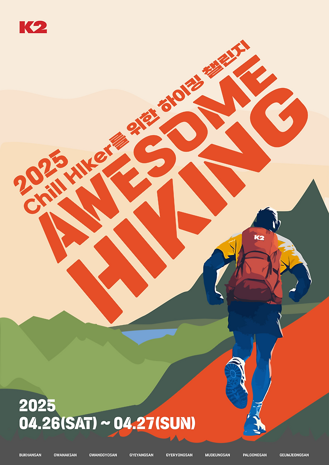 한편, '2025 K2 어썸하이킹'에 대한 자세한 내용은 K2공식 온라인몰 및 K2 어썸하이킹 인스타그램 계정을 통해 확인할 수 있다.