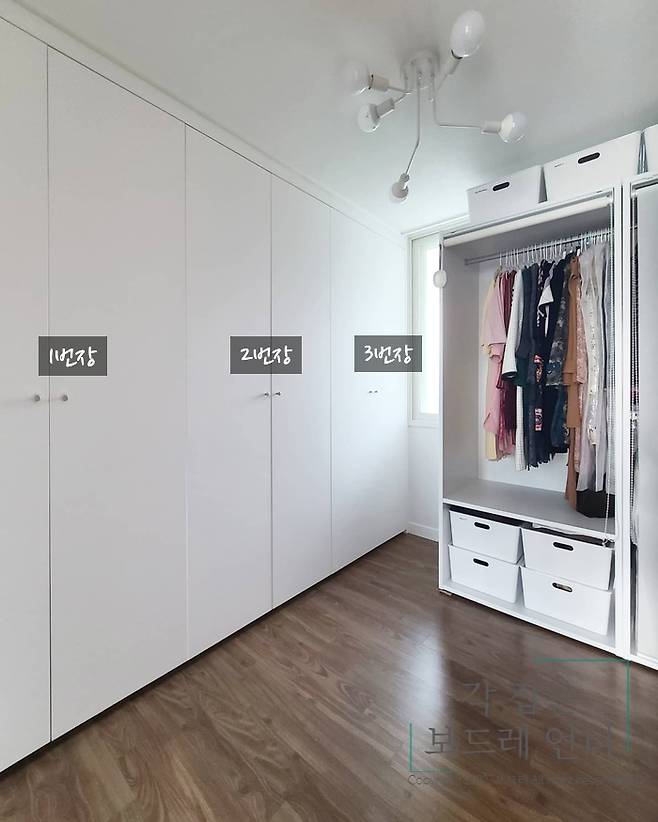 붙박이장 수납 노하우는 왼쪽 1번장부터 오른쪽 3번장 순으로 설명해 드릴게요.