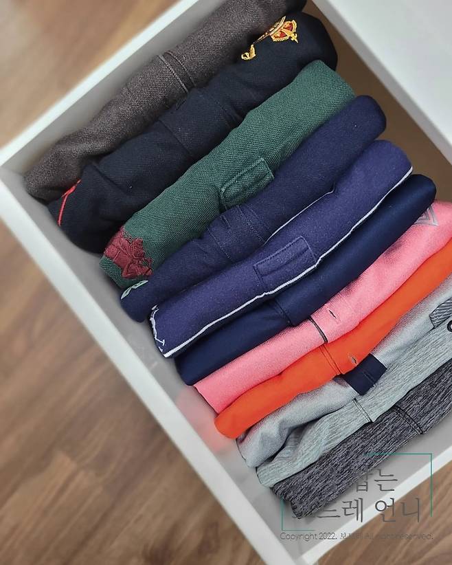 여름용 카라 셔츠도 잘 접어서 수납해 줬어요.