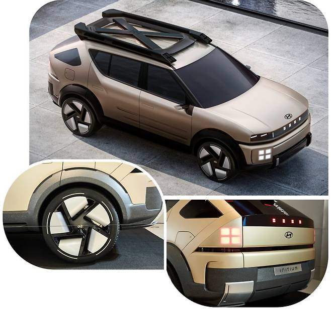 한편, 현대자동차 수소전기차 콘셉트카 '이니시움' 전면부 램프 디자인에는 현대자동차그룹의 수소 밸류체인 사업 브랜드인 'HTWO'의 심벌을 형상화한 유니크한 디자인을 적용해 수소전기차만의 아이덴티티를 강조 했으며. 이와 함께 볼륨감 있는 펜더, 웅장한 21인치 휠, 견고함을 강조한 도어의 그루브 패턴 디테일을 적용해 도시와 아웃도어를 넘나드는 감성을 충족하는 SUV 다운 면모를 더욱 강화했습니다.
