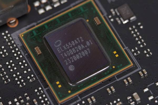 ASPEED의 6세대 서버 관리 프로세서인 AST2500은 ARM11 임베디드 프로세서와 DDR4 메모리, 그리고 1920x1200 해상도 출력을 지원하는 2D 온보드 그래픽 컨트롤러가 들어간다. AST2500 옆에 삼성 512MB DDR4 메모리가 달린 것을 볼 수 있다.