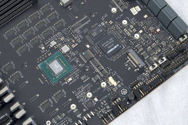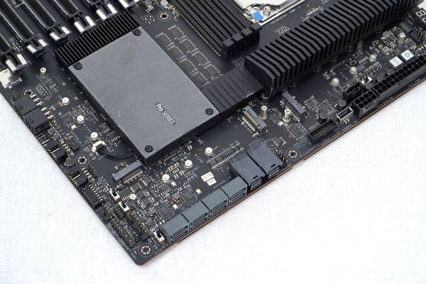 메인보드에 들어간 3개의 M.2 슬롯은 3개로 분리되는 방열판으로 덮여 있어 스토리지 부하로 인한 발열로 스로틀링이 생기는 것을 방지하며 깔끔한 워크스테이션 보드 디자인을 유지하도록 만들었다. M.2 스토리지를 이용한 NVMe RAID 구성도 지원한다.