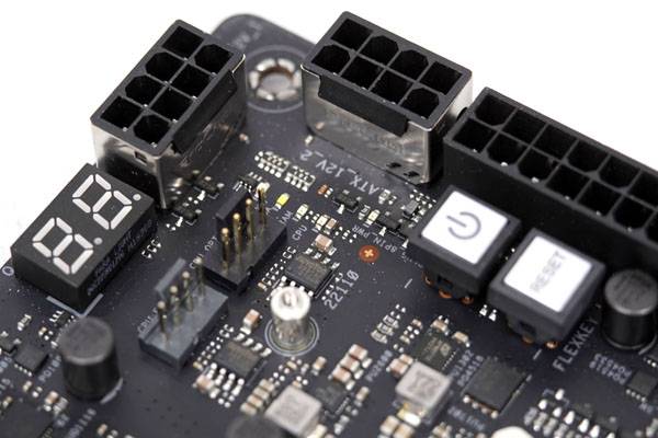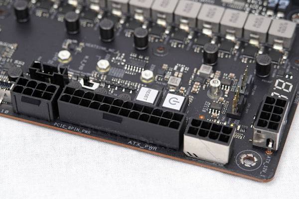 24핀 ATX 전원 커넥터와 메탈 커버를 적용한 2개의 ATX 12V 전원 커넥터 및 PCIe 8핀 전원 커넥터, 그리고 시스템이 고사양 그래픽 카드로 멀티 GPU를 구성할 때 전원 출력 안정성을 제공하기 위한 2개의 추가 PCIe 6핀 전원 커넥터가 달려있다.