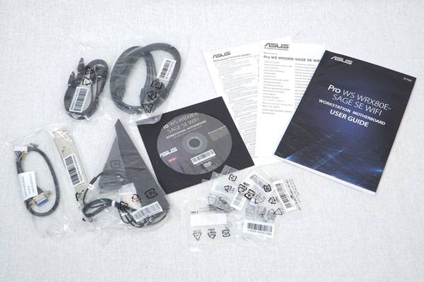 그 밖에 메인보드 구성품으로는 사용자 안내서와 빠른 시작 설명서, 드라이버 및 유틸리티 지원 DVD, ASUS 2x2 듀얼밴드 WiFi 무빙 안테나, SATA 데이터 케이블 6개, 온보드 그래픽용 VGA(D-Sub) 케이블, M.2 설치 나사 및 스탠드 오프, Q-커넥터 등이 제공된다.
