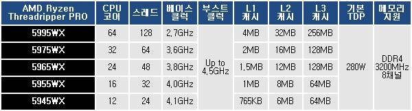 AMD 라이젠 스레드리퍼 프로 5000 WX 시리즈는 최대 64코어 128스레드와 8채널 DDR4-3200MHz 메모리, 128개의 PCIe 4.0 레인과 이를 바탕으로 하는 수많은 PCIe 확장 슬롯 및 새로운 sWRX8 CPU 소켓이 적용된 AMD WRX80 칩셋 기반 플랫폼으로 일반 데스크탑 PC는 물론 하이엔드 데스크탑(HEDT)도 뛰어넘는 확실한 워크스테이션 시스템을 구축할 수 있다.