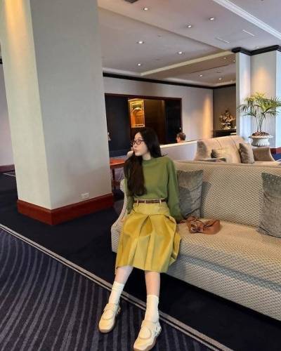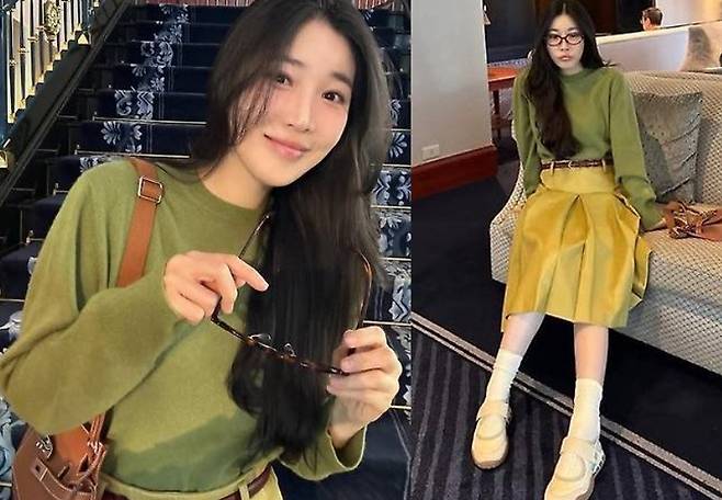 해리 언니는 최근 인스타그램에 여러 장의 사진을 올렸는데요. 사진 속 스타일링이 완전 제 취향 저격이었잖아요! 🏹 부드러운 올리브 그린 니트에 머스터드 톤 A라인 플리츠 롱스커트를 매치해 봄 햇살처럼 따뜻하고 화사한 분위기를 연출했어요. 웜톤 코디 완전 찰떡! 🍯