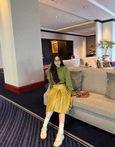 • 스커트: 머스터드 톤 A라인 플리츠 롱스커트로 여성스러움 강조!