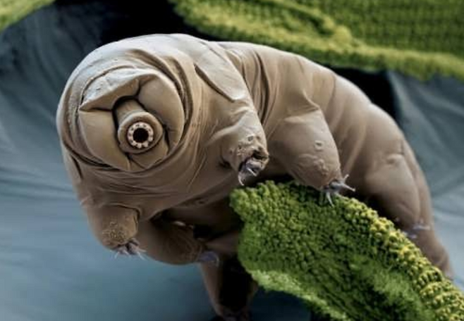 완보동물의 하나인 Tardigrada는 0.1~1mm정도의 매우 작은 무척추 동물입니다. 머리와 4개의 몸마디로 되어있으며 4쌍의 다리로 걷는 모습이 곰의 움직임과 비슷하다 하여 물곰이라고 불리기도 합니다.