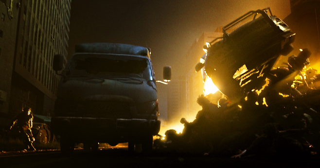 [부산행]의 후속작 [반도]에선 생존자끼리의 대결과 좀비와의 추격전, 마지막 인천으로 향하는 과정에서 마치 [매드맥스]를 연상케하는 큰 스케일의 카체이싱 장면이 펼쳐진다.