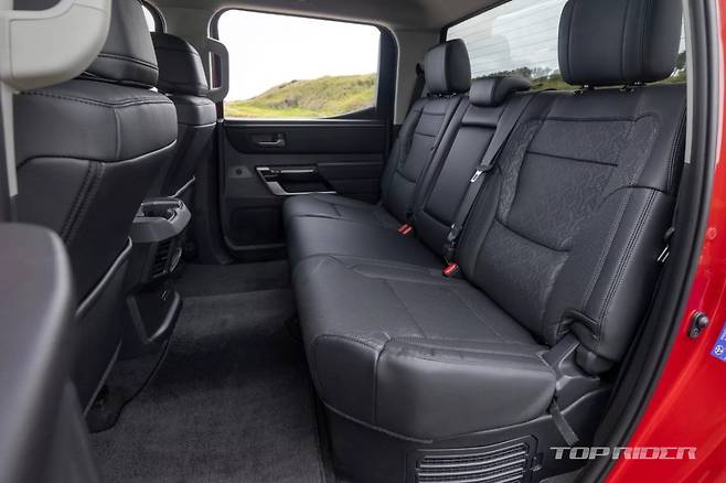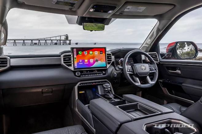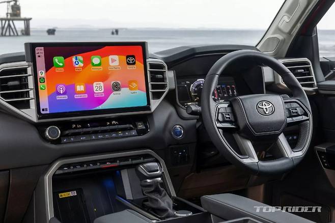 신형 툰드라에는 'C'자형 라디에이터 쉘과 독특하게 디자인된 헤드램프, 14인치 실내 디스플레이, 12.3인치 디지털 계기판 등 토요타 최신 사양이 탑재됐다. 어댑티브 크루즈 컨트롤과 차선 유지 보조, 서라운드 뷰 등으로 구성된 최신 ADAS, 12스피커 JBL 오디오 시스템이 적용됐다.
