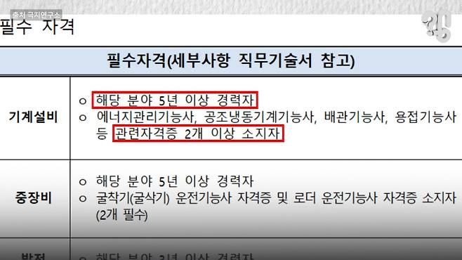 앞에서 언급한 채용 공고에도 기계설비 대원들은 최소 5년 이상의 경력과 에너지관리기능사, 공조냉동기계기능사 등 각종 관련자격증을 최소 2개는 필수로 가지고 있어야 지원 가능하다고 되어있다. 허들부터 굉장히 높은데, 경쟁률도 어마어마하다고.