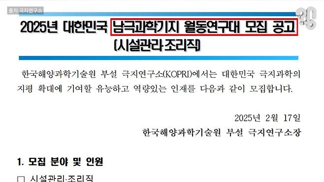 이 사진을 보라. 극지연구소의 남극과학기지 파견 대원 모집 공고인데,