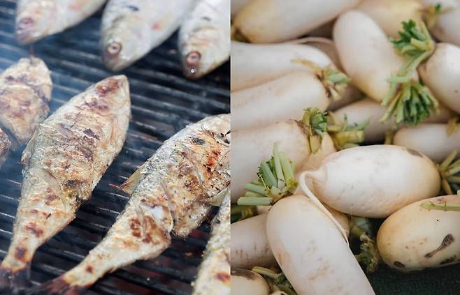 ‘가을 전어 굽는 냄새에 집 나간 며느리도 돌아온다’는 속담이 있을 만큼 전어는 가을 대표 생선이다. 오메가3 지방산과 칼슘이 풍부하지만 소화가 다소 더딜 수 있다. 이때 무를 곁들이면 전어의 기름진 맛을 깔끔하게 잡아주고, 소화를 돕는 효소와 비타민 C까지 보충된다. 전어조림이나 전어국에 무를 함께 넣으면 맛과 건강 효과가 배가된다.