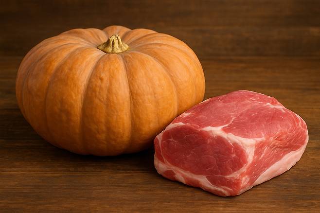 늙은 호박은 10월 전후로 가장 맛과 영양이 뛰어난 제철 식품이다. 베타카로틴과 비타민 C, 칼륨이 풍부해 면역력 강화와 피로 회복에 도움을 준다. 여기에 단백질과 비타민 B군이 풍부한 돼지고기를 곁들이면 영양 균형이 완성된다. 돼지고기의 지방은 호박 속 지용성 성분의 흡수를 돕고, 호박의 단맛은 고기의 풍미와 어우러져 식욕을 더욱 돋운다.