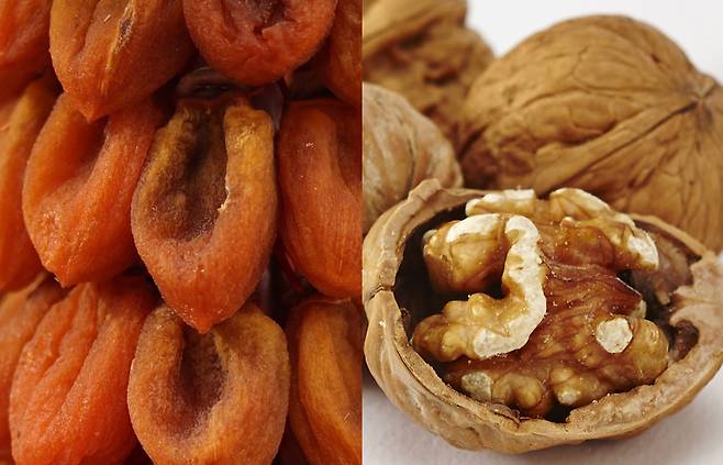 감은 가을철 대표 과일로 비타민 A와 C가 풍부해 면역력 강화에 좋다. 하지만 수분과 당분 위주의 과일이기에 단백질과 지방은 부족하다. 이때 호두를 곁들이면 오메가3 지방산과 단백질이 보완돼 영양 균형이 맞춰진다. 또한 감의 달콤한 맛과 호두의 고소한 맛이 어우러져 디저트나 간식으로 손색이 없다.