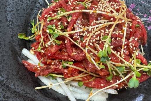 배는 단백질 분해 효소인 프로테아제가 풍부해 고기를 부드럽게 하고 소화를 돕는다. 소고기와 함께 먹으면 육질이 연해져 소화 부담을 줄일 수 있다. 또한 배의 펙틴 성분은 콜레스테롤 수치를 낮추고 변비를 예방하는 효과가 있어 기름진 고기와의 조합이 더욱 빛을 발한다. 전통적인 육회에 배를 곁들이는 방식이 바로 이러한 영양학적 원리에 기반한다.