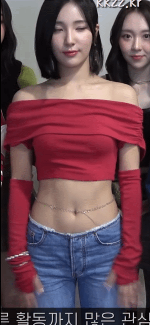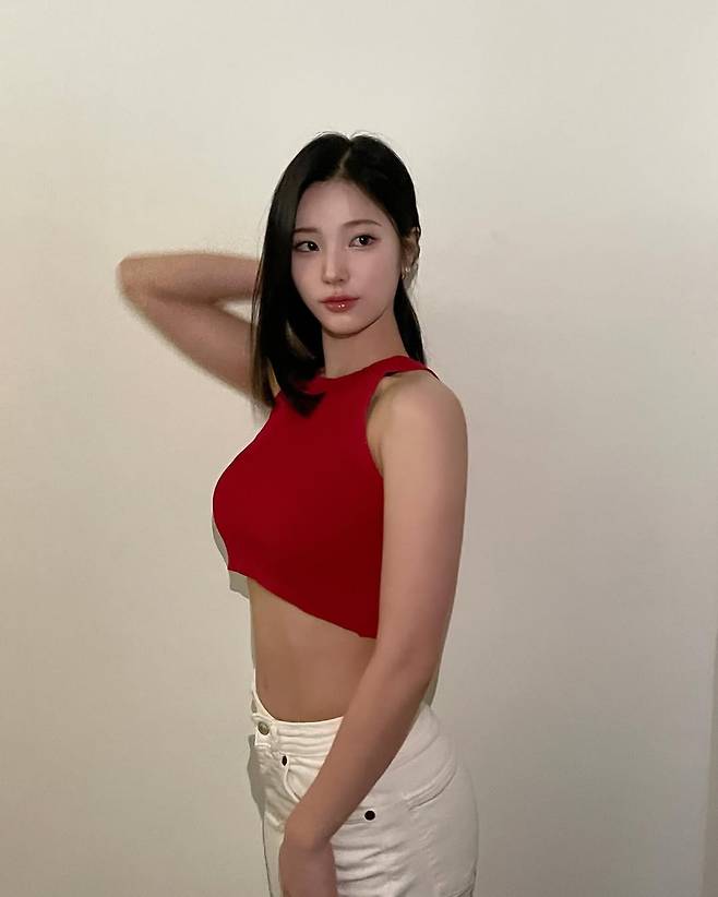 레드 크롭탑과 하이웨이스트