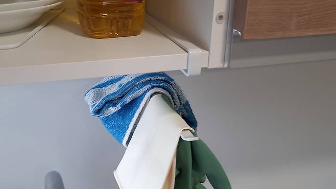 요렇게 싱크대 근처에 두어 고무장갑이나 행주를 걸어두는 용도로도 아주 좋고요.