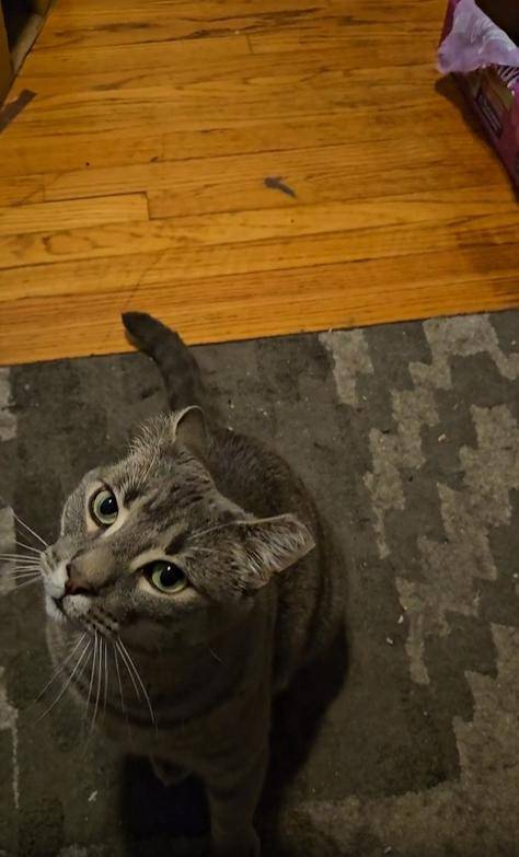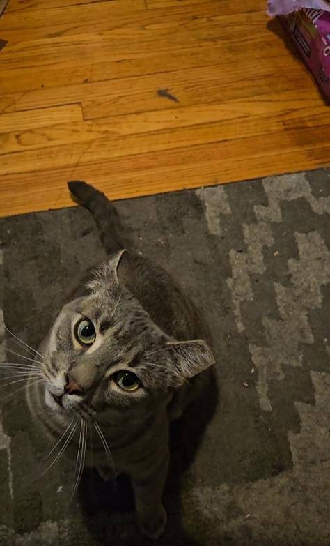 고요한 방 안, 주인은 카메라를 들고 서 있습니다. 렌즈는 아래를 향하고 있고, 그 아래에는 고양이 한 마리. 고개를 치켜든 고양이는 고요하지만 집중된 눈빛으로 렌즈를 응시합니다. 귀는 쫑긋, 수염은 약간 앞으로 뻗어 있고, 눈동자는 사냥감을 바라보듯 미세하게 흔들리고 있죠. 주인은 이 모습이 귀여워 조용히 영상을 촬영합니다.