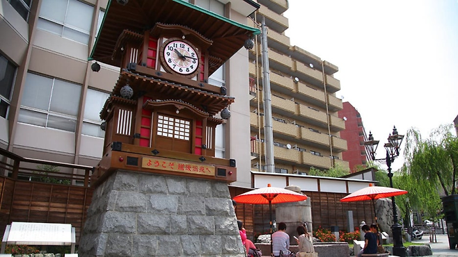 도고 온천 주변에는 꼭 들러봐야 할 장소들이 많아요. 특히 도고온천 입구에 위치한 ‘봇짱 카타쿠리 시계탑’은 오르골처럼 움직이는 시계탑으로, 매시 정각마다 멋진 퍼포먼스를 볼 수 있어요. 그리고 바로 옆에 있는 무료 족욕장에서 따뜻한 물에 발을 담그며 공연을 구경하는 것도 잊지 마세요.