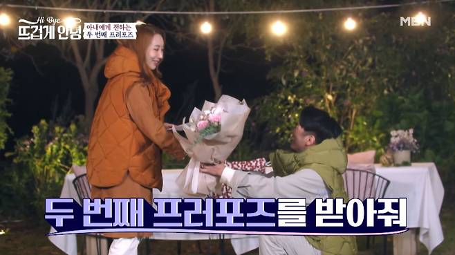 MBN '뜨겁게 안녕' 프로그램에 출연한 두 사람에게 결정적인 순간이 찾아왔습니다. 김형균은 민지영에게 감동적인 영상 메시지를 보내며 "나랑 다시 여행 떠나서 행복하게 살아볼래? 나와 다시 결혼해 줘"라며 무릎을 꿇고 두 번째 프로포즈를 했습니다. 이에 민지영은 눈물을 흘리며 김형균의 손을 따뜻하게 잡았습니다.