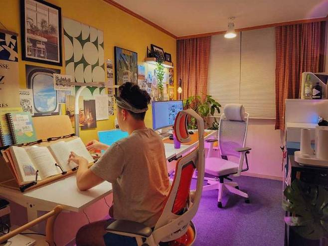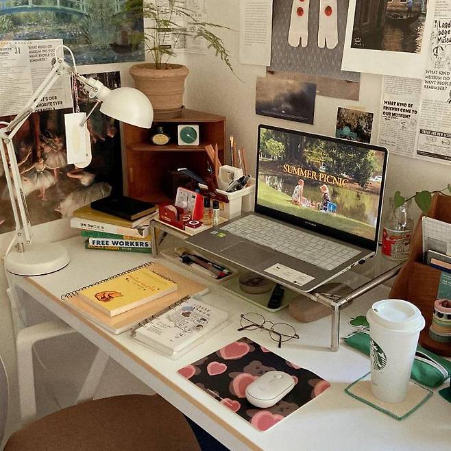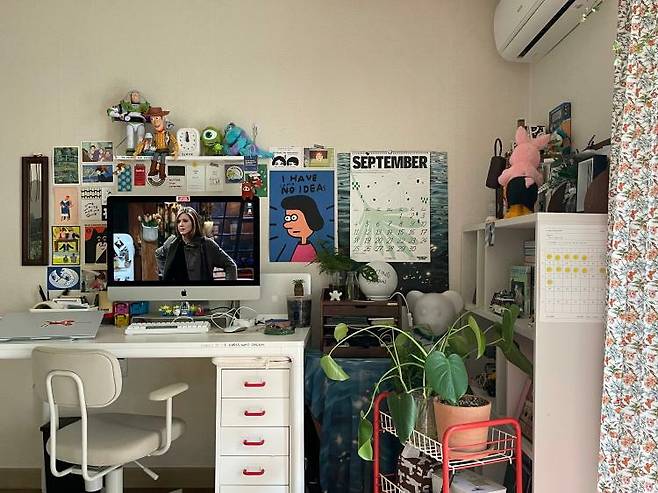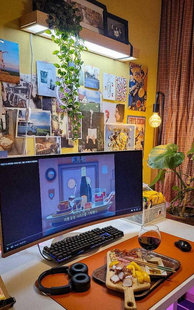 큰 변화를 시도하기보다 조금씩 책상 공간을 바꾸는 재미를 느끼시고 있다고 해요. 특히 책상의 가장 큰 부분을 차지하는 컴퓨터 배경화면을 바꾸거나, 식물을 추가해 보는 것만으로도 소소한 행복을 느낄 수 있다고 하네요.
