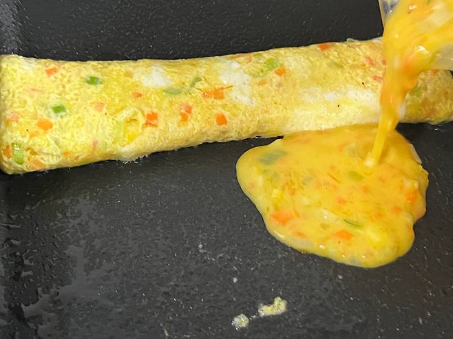 주걱이나 뒤집개로 말아준 다음 같은 과정을 반복해 주세요.