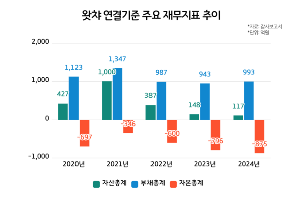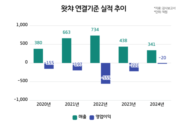 이번 회생 신청은 투자사가 주도했다. 장기 적자와 추가 투자 유치 실패, 490억원 규모 전환사채(CB) 만기 연장 실패 등 재무 구조 악화가 직접적인 원인으로 지목된다. 왓챠는 지난해 사업 축소와 자회사 매각으로 재무 구조 개선을 시도했으나 적자를 벗어나지 못했다. 왓챠의 영업손실은 2024년 약 20억원, 2023년 약 221억원을 기록했다. 지난해 말 자본총계는 -875억원으로 완전 자본잠식 상태다.