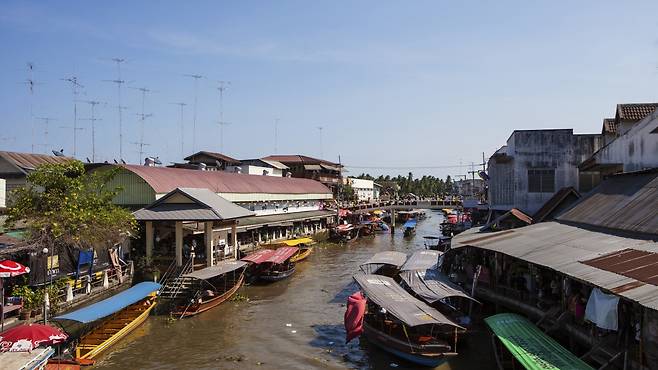 인공수로를 따라 나란히 늘어선 상점과 가판대에서는 신선한 열대과일부터 악어고기, 타조고기 등을 저렴한 가격에 만날 수 있습니다.