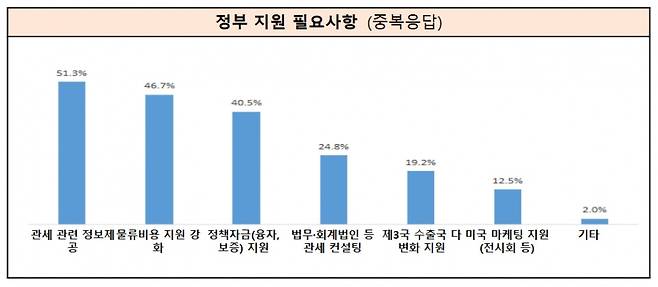 미국 조화시스템(HS) 코드 확인 요청도 적지 않아...금융 및 컨설팅 지원도 필요