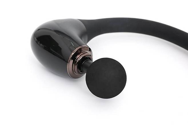 본체의 머리 부분에는 마사지 헤드가 장착되어 있다. 머리 부분은 큼직하고 둥근 모양에 유광으로 되어있으면서 마사지 헤드 연결 부분은 포인트 컬러가 들어가 있어서 좀 더 고급스러운 느낌이다.